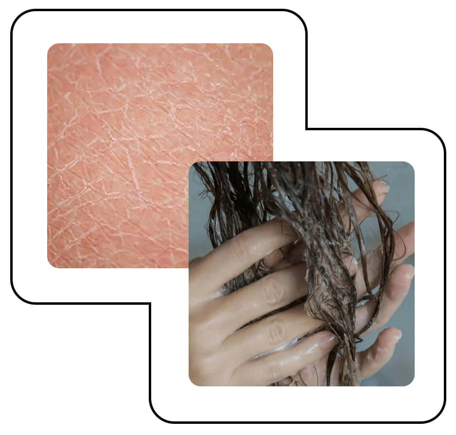 Le calcaire et certaines impuretés perturbent l'équilibre naturel de votre peau. En éliminant ses huiles protectrices, ils provoquent sécheresse, irritations et altèrent la structure même de votre fibre capillaire⁴.